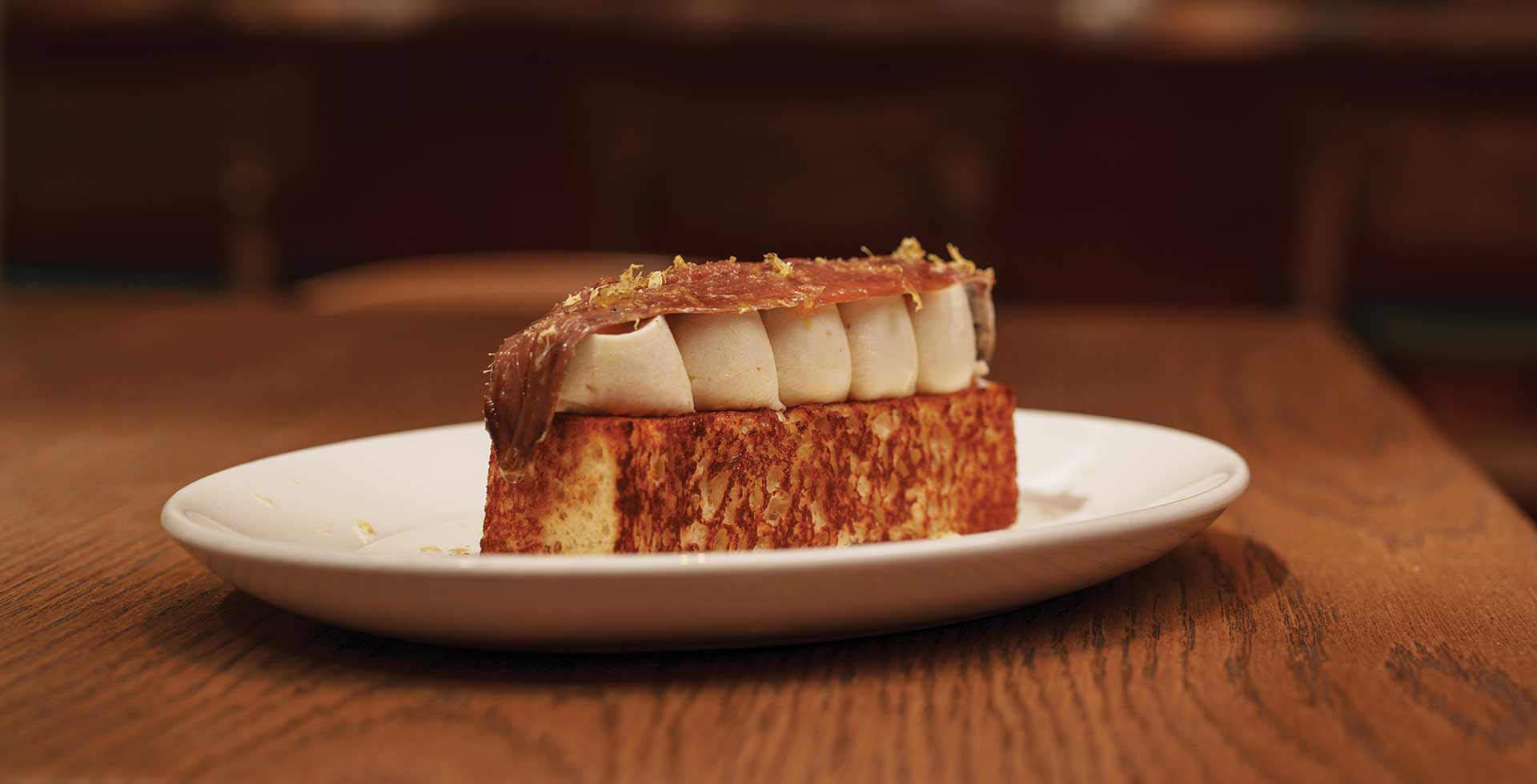 Ingredients – including their producers, history, and legacy – are at the fore of Nieves’s vision and the very soul of Legado. Whole animal butchery takes place in-house, honouring farmers, animals, and the regions that rear them. Lamb, for example, is from Zamora, Lechazo de Castilla y León. It weaves its way throughout the menu, celebrating dishes from the Basque Country to Mallorca. Likewise, suckling pig, a symbol of prosperity and abundance with roots that trace back to Roman times, comes from the award-winning farm Tabladillo el Cochinillo in Segovia. Ham hails from Señorío de Montanera – a DOP company specialising in 100 per cent Iberian pigs that roam freely in the dehesa of Extremadura.