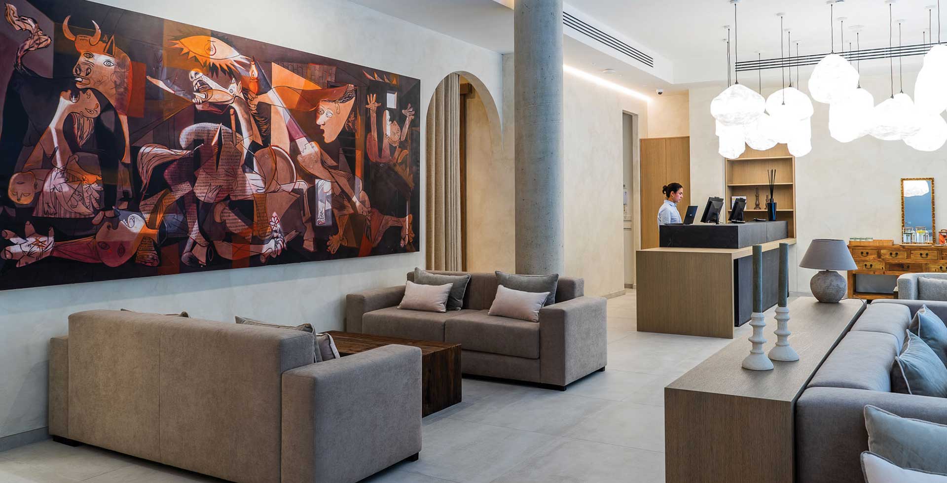 The Well & Come Hotel group is deeply committed to art. Over decades, they have forged a large collection comprising work by renowned Spanish artists. The new Málaga hotel features many beautiful works painted by Atachi Daza. Her artistic vision is present in every corner, and her work lends warmth and beauty to the spaces. The stunning interiors, meanwhile, have been designed by the artist’s daughter Lorena García Daza, who has chosen a warm, personal, Mediterranean style for this project. The hotel’s architect is none other than Oscar Agudo, who specialises in bioclimatic, efficient design. His work on the renovation of the vestibule and common areas of Calle Mauricio Moro Pareto 2, in Málaga, garnered him the Premio Málaga de Arquitectura (The Málaga Architecture Prize).
